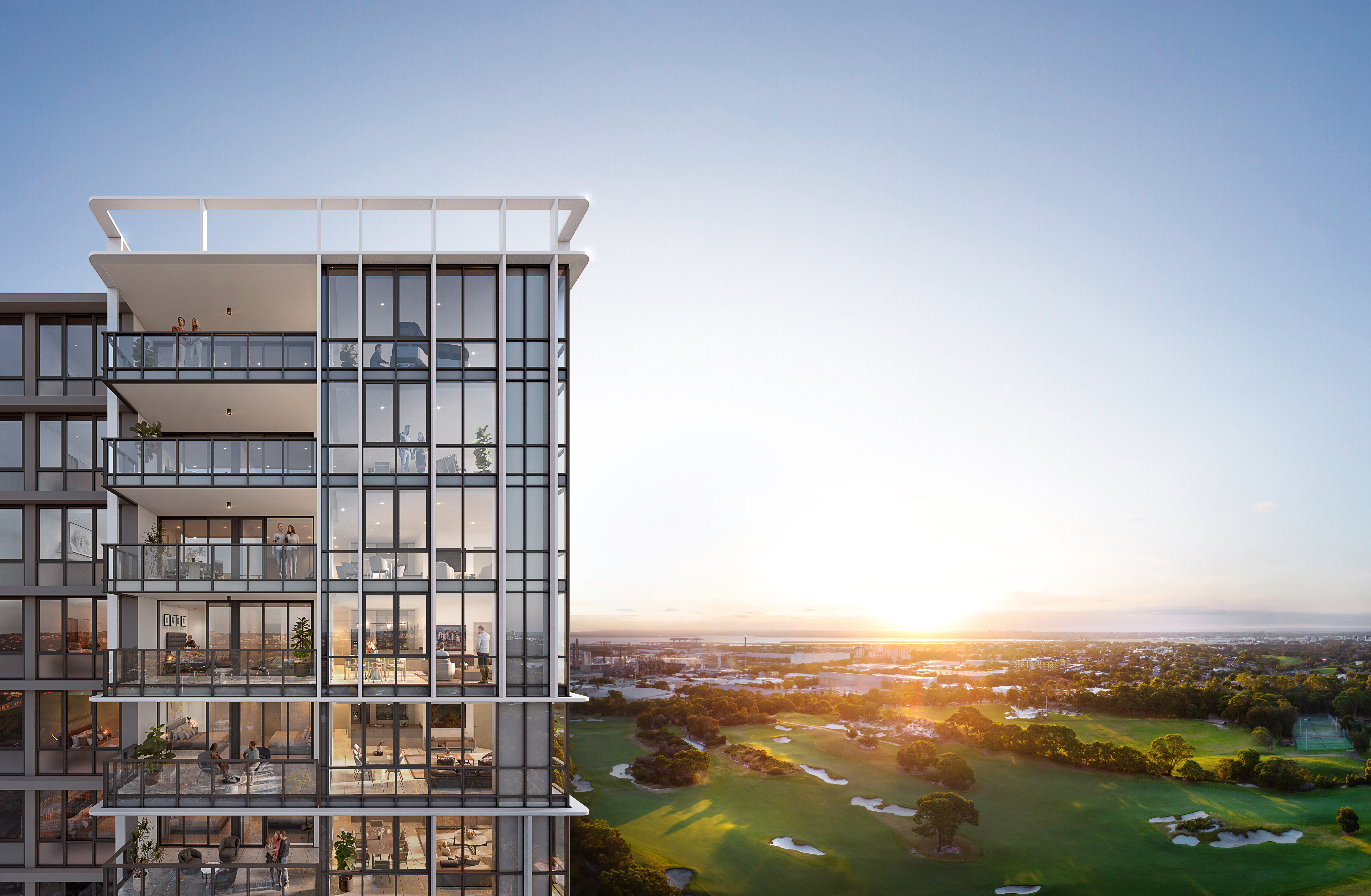 Mondrian’s two remarkable glass towers will rise 19 & 17 levels, positioned directly across from the prestigious Bonnie Doon Golf Course. A luxurious collection of oversized residences, boasting corner positions and uninterrupted panoramic views of the neighbouring golf courses, Sydney CBD, Botany Bay and the Central Park
